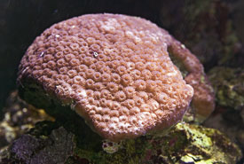 This coral represents both a new specimen AND new species in the tank. According to what little information I could find about them, Astreopora prefer strong light and water movement. And while these are not the EXACT conditions of the space I had available, they were close enough as a tiny bleached area on its top has already slowly begun to heal. From Reefer Madness. |