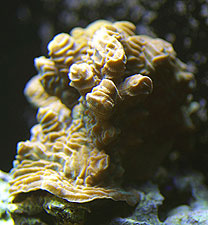 | "Okay. Maybe it's not Sandalolitha. Maybe it's "Pachyseris is one of my favorite 'sps' corals. Yeah, they're relatively slow growers (IME), they don't have the most vibrant colors, and the reef gurus can't seem to agree whether they like or dislike a lot of light, but you simply cannot beat it for character. It's like the Lee Marvin of corals. My 'pack' has only been with me a relatively short time; maybe 8 months, so it really hasn't done much except develop a slight, somewhat iridescent green patina that can best be seen overhead but is tough to show on film...at least on digital film. It currently stands at about 5" and asks absolutely nothing from me. I've chosen to keep it high in the water column, by the way." | |||